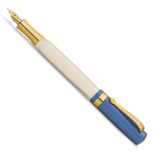 Der Student Füllhalter überzeugt mit seinem geschwungenen Stiftkörper und der kräfitg-blauen Stiftkappe aus hochwertigem Acryl. Der Stift wird in einer eleganten Blechdose geliefert und ist standardmäßig mit einer königsblauen Tintenpatrone bestückt.